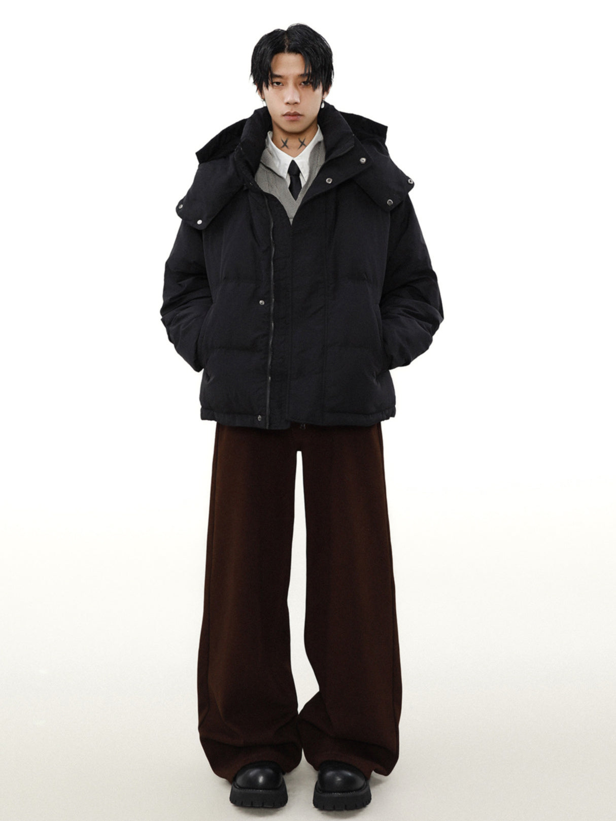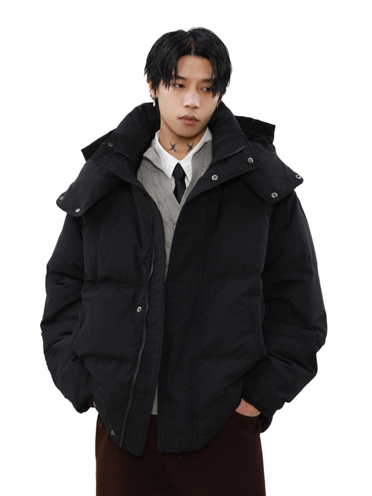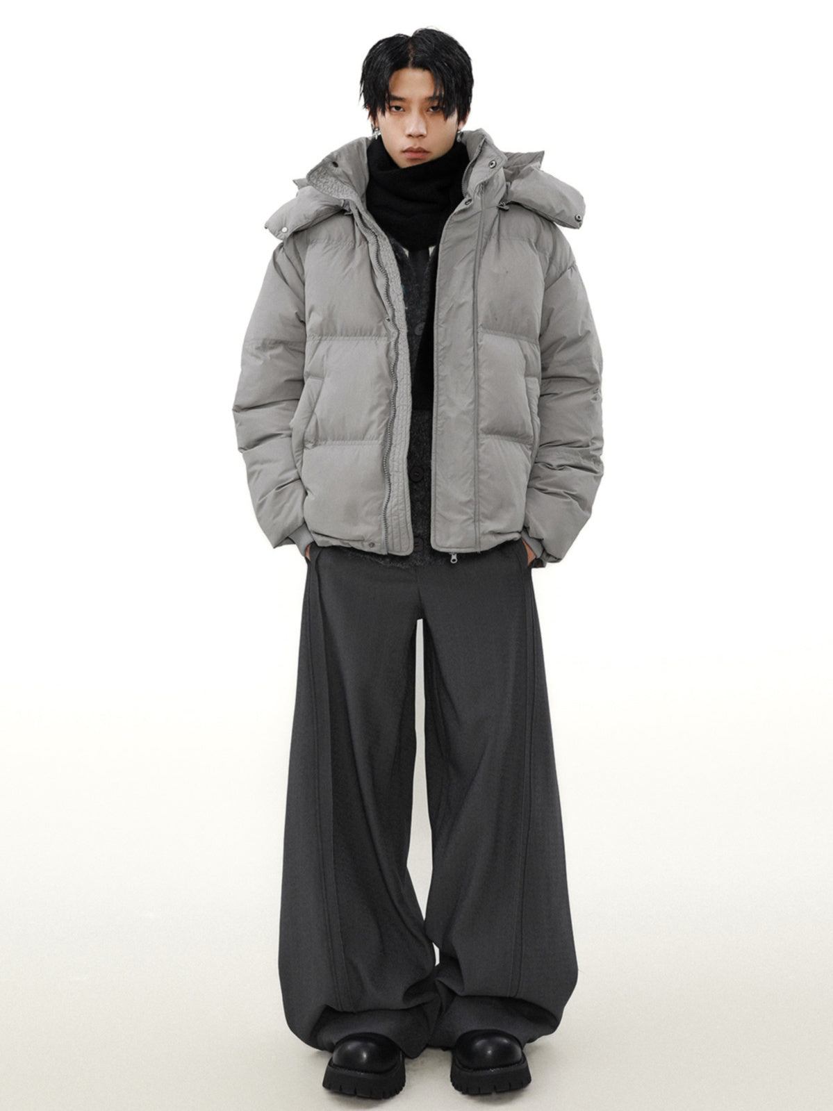 フードは取り外し可能です。気分に合わせて二種類のルックをお楽しみください。