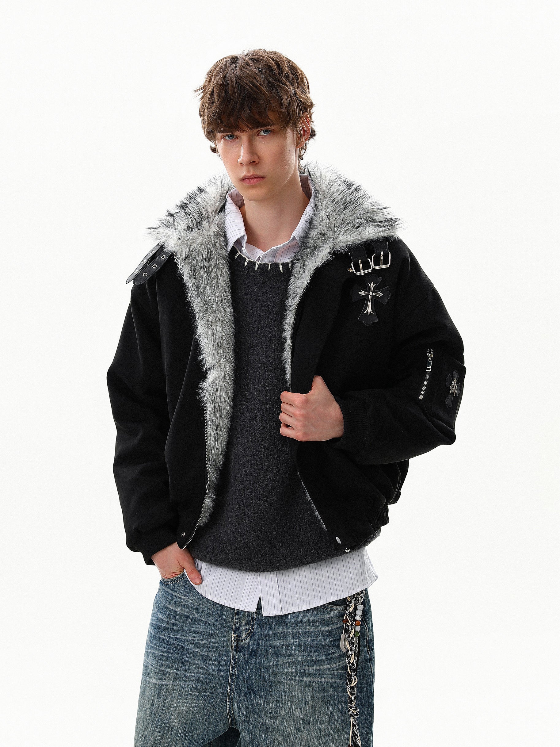 Cross Buckle Fur Jacket (2color)